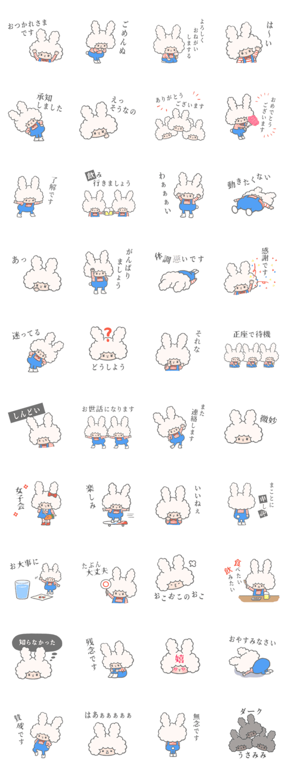 うさみみちゃんの日常使えるスタンプです。 シュール/かわいい/キュート/うさぎ/着ぐるみ/日常/使える/挨拶/気持ち/可愛い/アレンジ/きもかわ/動物/便利
