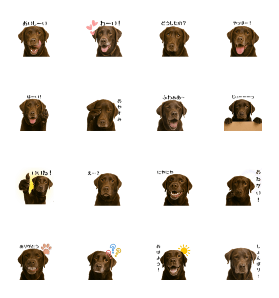 表情ゆたかなチョコラブが、あなたの気持ちをそっと伝えます。おつかれさま、お願い、うれしいなど毎日使える16個セットです。