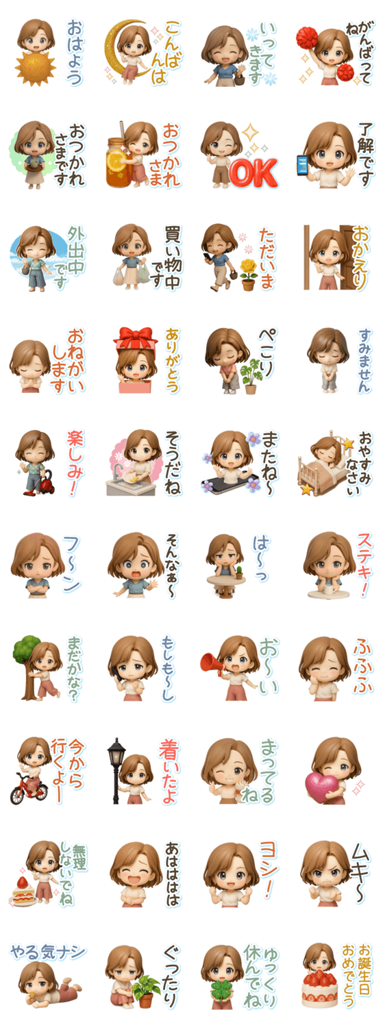 感情豊かに3Dドール風の女の子が会話を盛り上げます♪春夏秋冬使える!待ち合わせや家族連絡、夫婦やカップルのやり取りにもOK♡大人女子/シニア/可愛い/挨拶/お誕生日
