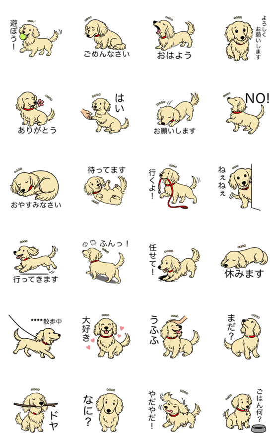 | スタンプ説明 | 愛犬お名前が入れられる!ミニチュアダックスロングクリームバージョン |
