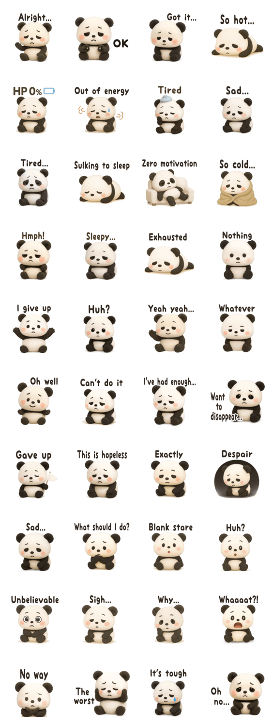 ぷっくり可愛い「ゆるパンダ ぷく」ちょっとネガティブでゆる~い気持ちをお届けします。疲れた日、落ち込んだ日、口に出せない本音も、この子なら可愛く伝えられます。