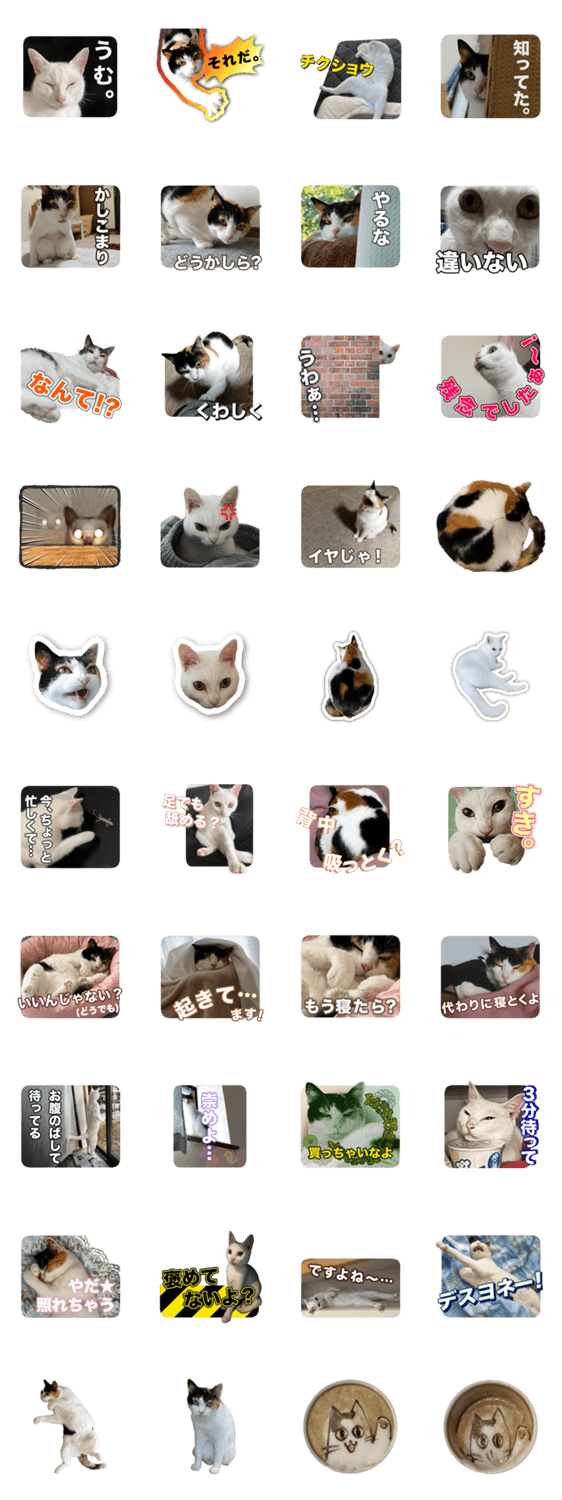 首のないネコスタンプのモデルになった「友達の猫スナップ」シリーズ。第二弾。無駄に写真へ貼ったり、アレンジ機能で遊べるように、文字無しデザインを増やしてみました。