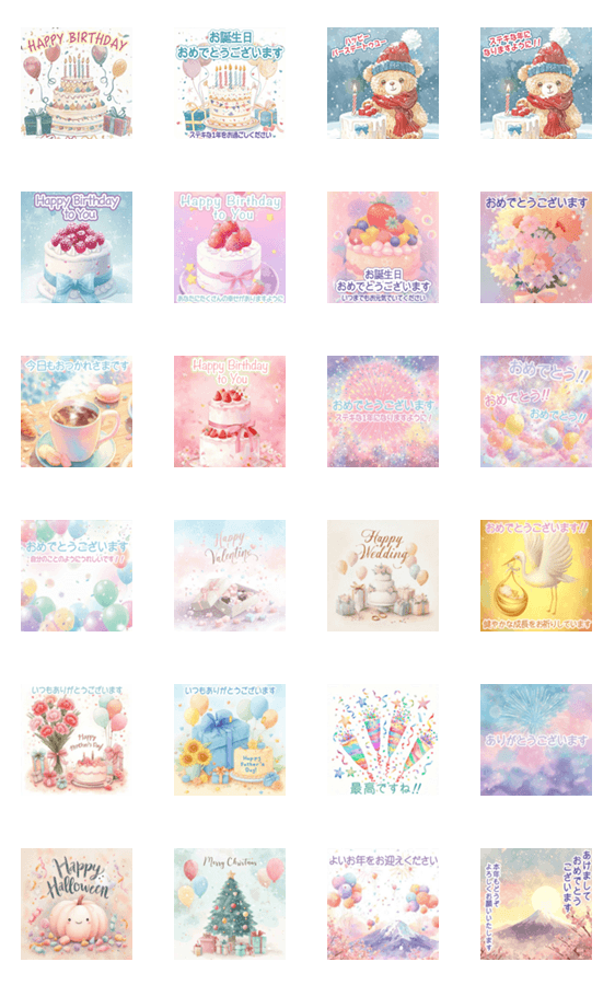 パステル調の優しい色合いの癒しのお誕生日お祝いセットです!季節の年間行事も盛りだくさん♪バレンタイン/結婚/出産/母の日父の日/ハロウィン/クリスマス/年末年始お正月