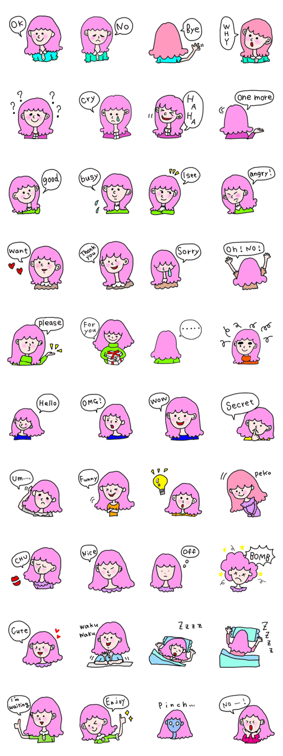 イロンナガールよりピンクヘアーのピンクな彼女のソロスタンプです。