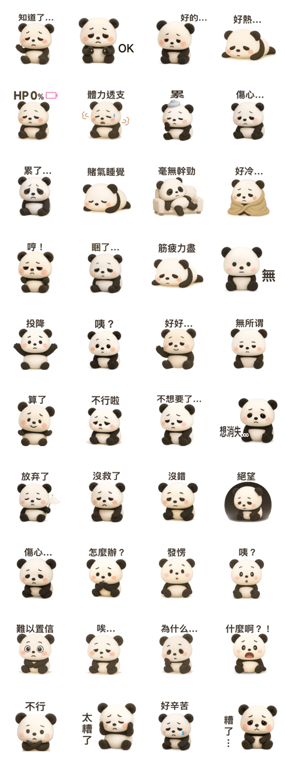 ぷっくり可愛い「ゆるパンダ ぷく」ちょっとネガティブでゆる~い気持ちをお届けします。疲れた日、落ち込んだ日、口に出せない本音も、この子なら可愛く伝えられます。