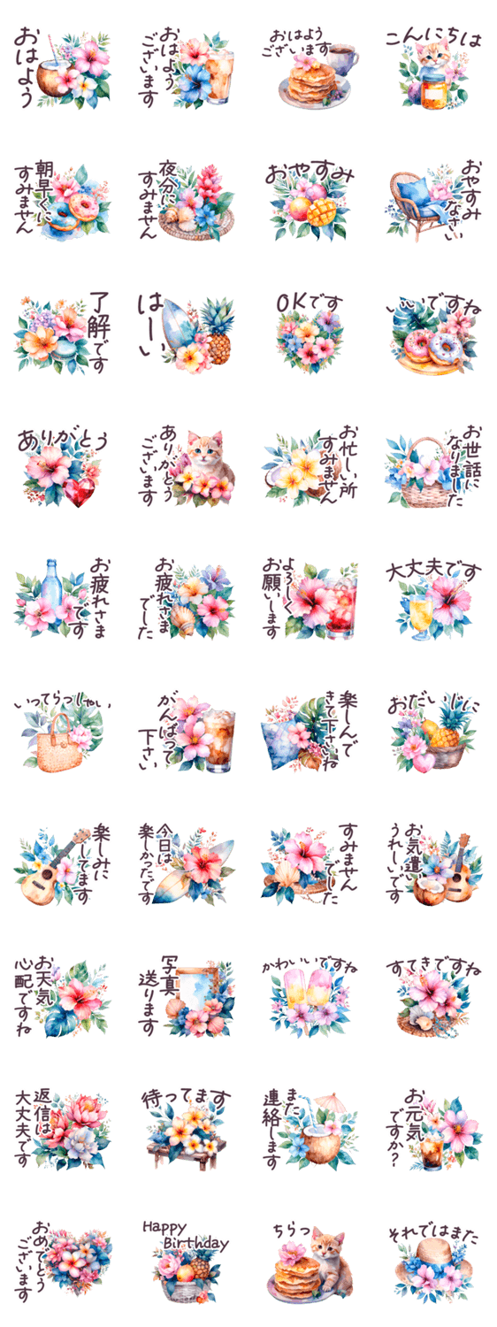 毎日使える ハワイ 敬語✿大人上品お花 -LINEスタンプマニア