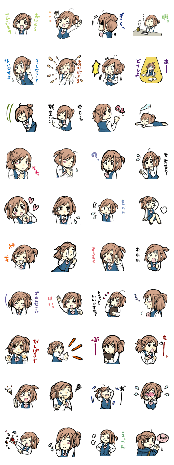 おっちょこちょいなかけだしのOLさん。忙しかったり暇だったり、悲しかったり嬉しかったりと、日常生活や職場で感じる様々な気持ちを彼女が表情豊かに代弁してくれます。