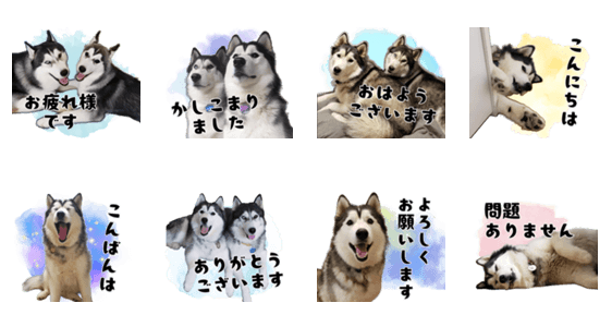ロック&アイス シベリアンハスキー スタンプ。日常会話にぴったりな可愛くて表情豊かなハスキーコンビ!