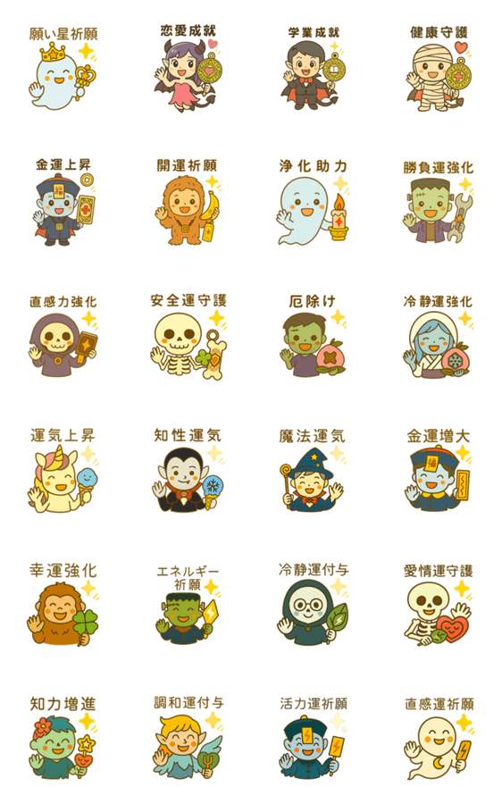 運気アップしたいあなたに、最強の守護スタンプ登場! 恋愛・金運・健康・美容・知性・浄化…ぜんぶ叶える24体のアンデッドたちが、あなたのトークをポップに守護。