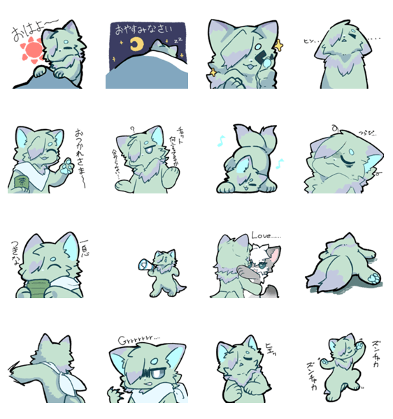 緑葉犬のティーちゃんのスタンプです(ゲスト:イトマル君)