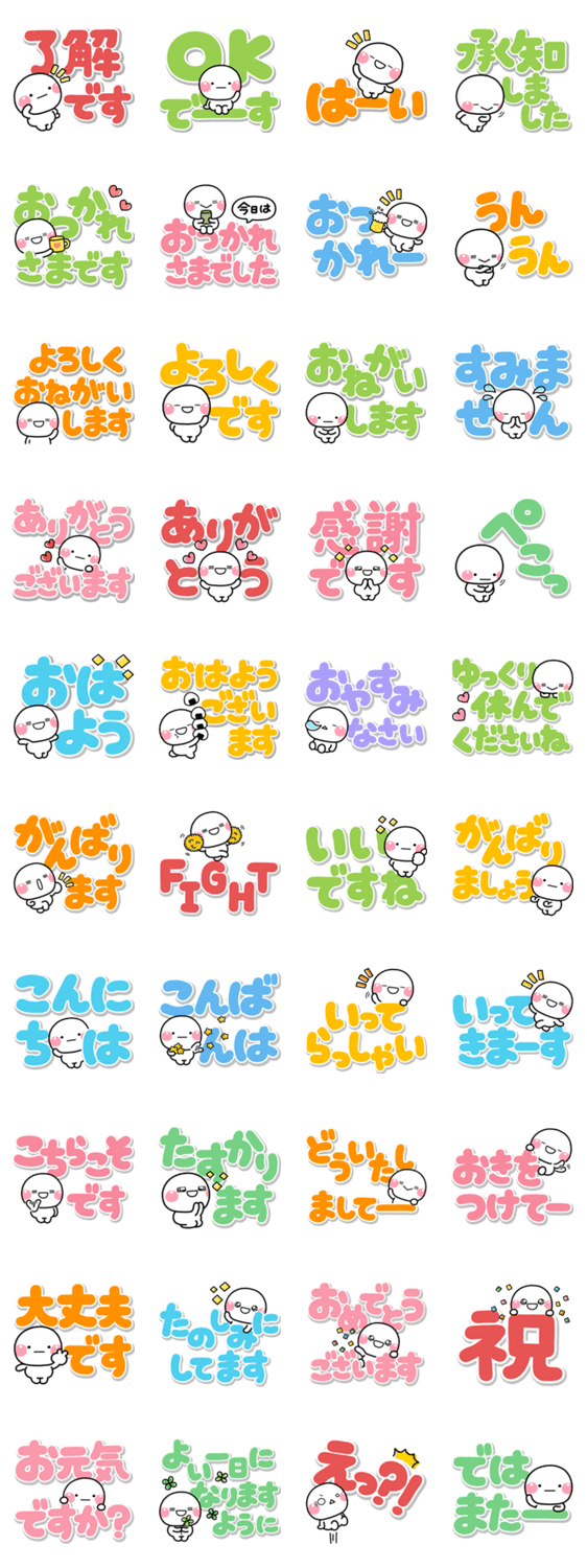シンプルな大きな文字で選びやすく見やすい使えるスタンプです。ずっと使える内容を揃えましたのでスタンプ初心者の方にもオススメです。【作:いしいともこ】