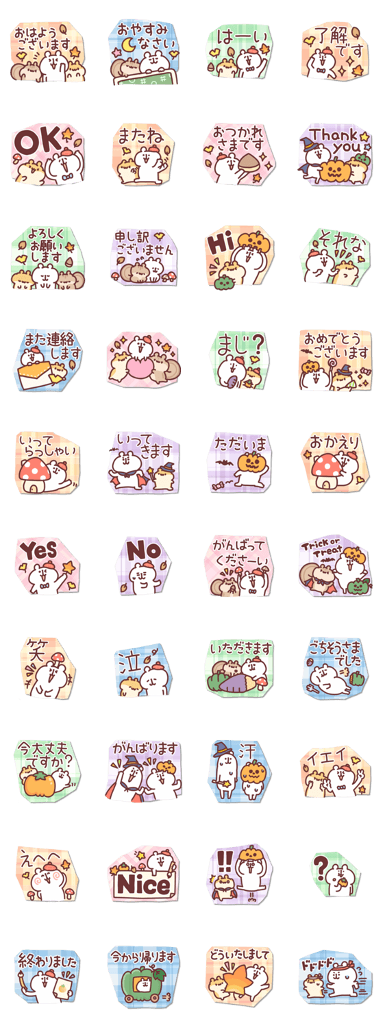 お月見やハロウィン、紅葉など、秋に使いやすい可愛いスタンプ♪