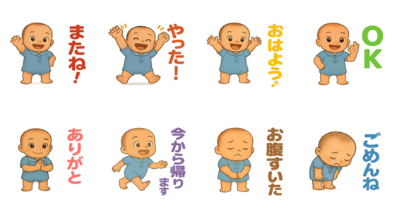 「3D風のかわいい赤ちゃんが、日常で使いやすい言葉を伝えるスタンプです。あいさつや感謝、ちょっとした気持ちを表現できます。」