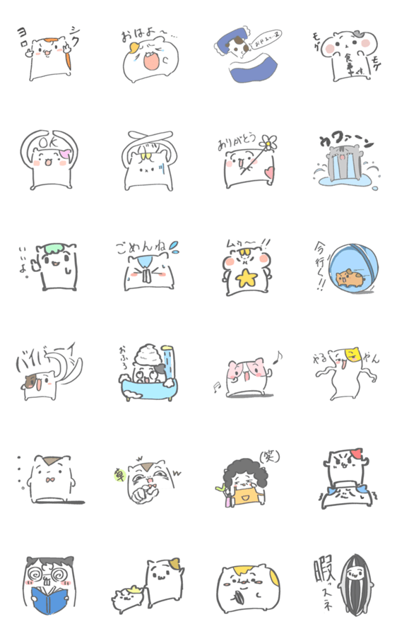 手書きの個性豊かなカラフルハムスタースタンプです!(変な種とシュールなハムが紛れてます)