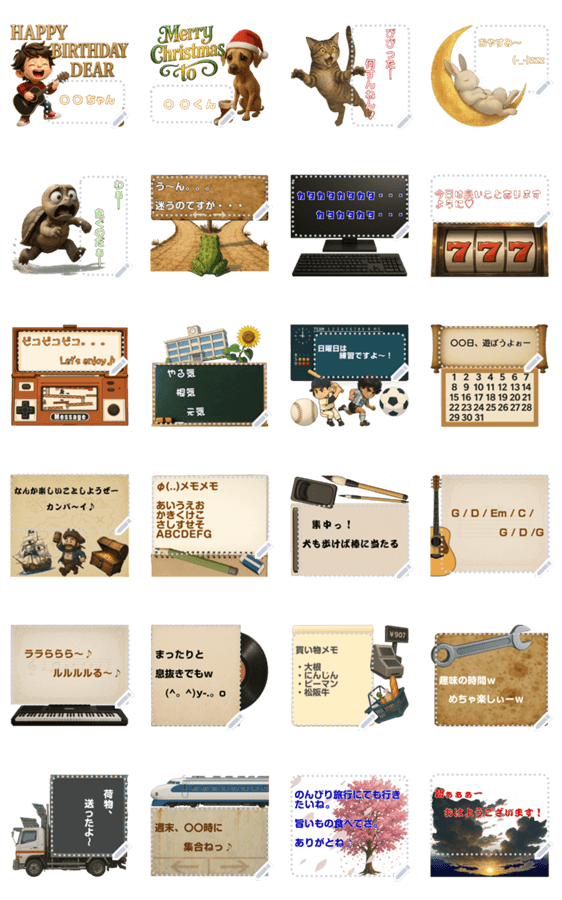 様々なイラストで素敵な言葉をプレゼント♬ 自由にテキストを入力できる便利なメッセージスタンプです。 動作環境の最新情報はヘルプにてご確認願います。 現在この商品は一部のスマートフォン版LINE 10.3.0以上のトークルームでのみ使用できます。動作環境の最新情報はヘルプをご確認ください。