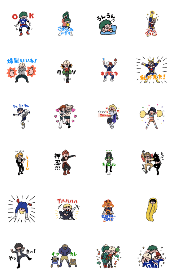 けたたましく動くデクたちのスタンプ。 ※LINE Creators Collaboration 僕のヒーローアカデミア参加スタンプです。
