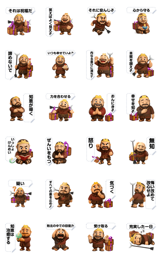 | スタンプ説明 | Sha Monk - 3D Japan's message 現在この商品は一部のスマートフォン版LINE 10.3.0以上のトークルームでのみ使用できます。動作環境の最新情報はヘルプをご確認ください。 |