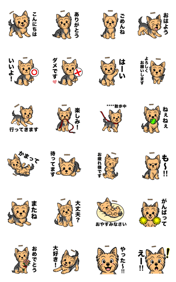 | スタンプ説明 | 愛犬の名前が入れられる!ヨークシャテリアブルータンバージョン |