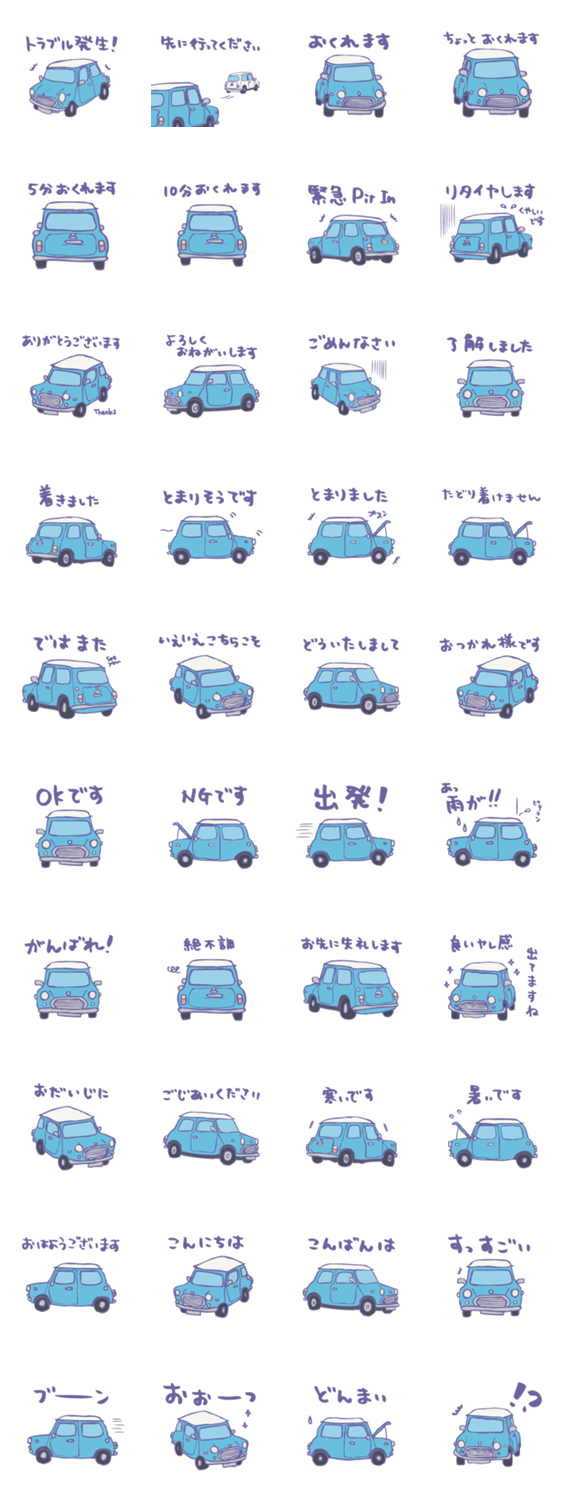 ツーリングに最適!日常会話でも使える!小さいクラシックカーのゆるっとかわいい手書き風スタンプです。