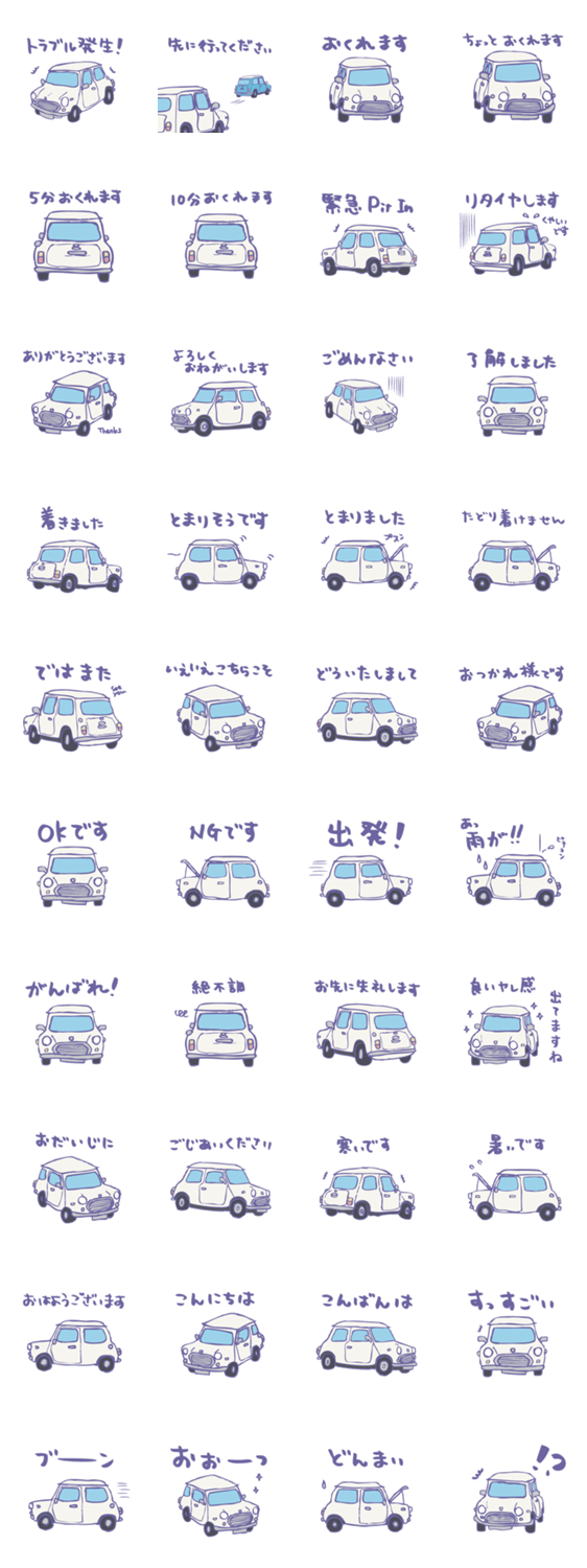 ゆるゆるクラシックカー(white) -LINEスタンプマニア