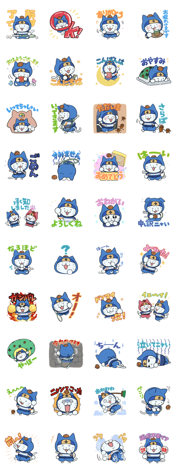どんくさいけど憎めない! 猫×テニス×忍者=「いがのすけ」参上! ゆる〜く使えるスタンプです。