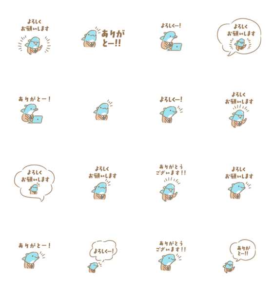 ソーダの色のイルカのスタンプ。「よろしくお願いします」「ありがとう」バージョン。