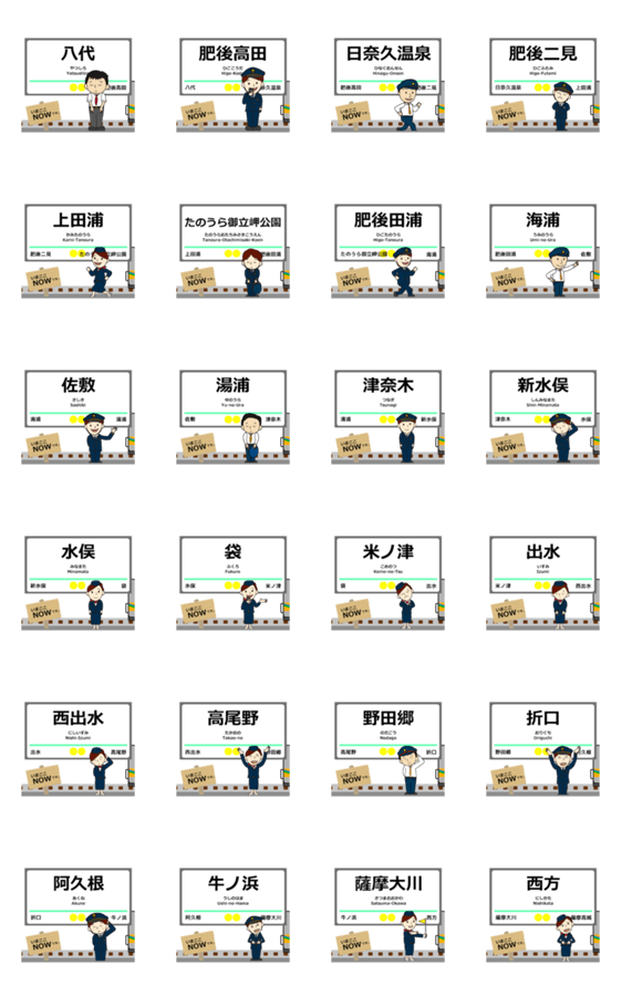 八代,佐敷,阿久根,西出水,肥後高田,水俣,川内,野田郷,上川内,出水,米ノ津,折口,高尾野,湯浦,津奈木,たのうら御立岬公園,新水俣,日奈久温泉,肥後田浦,肥後二見,袋,草道