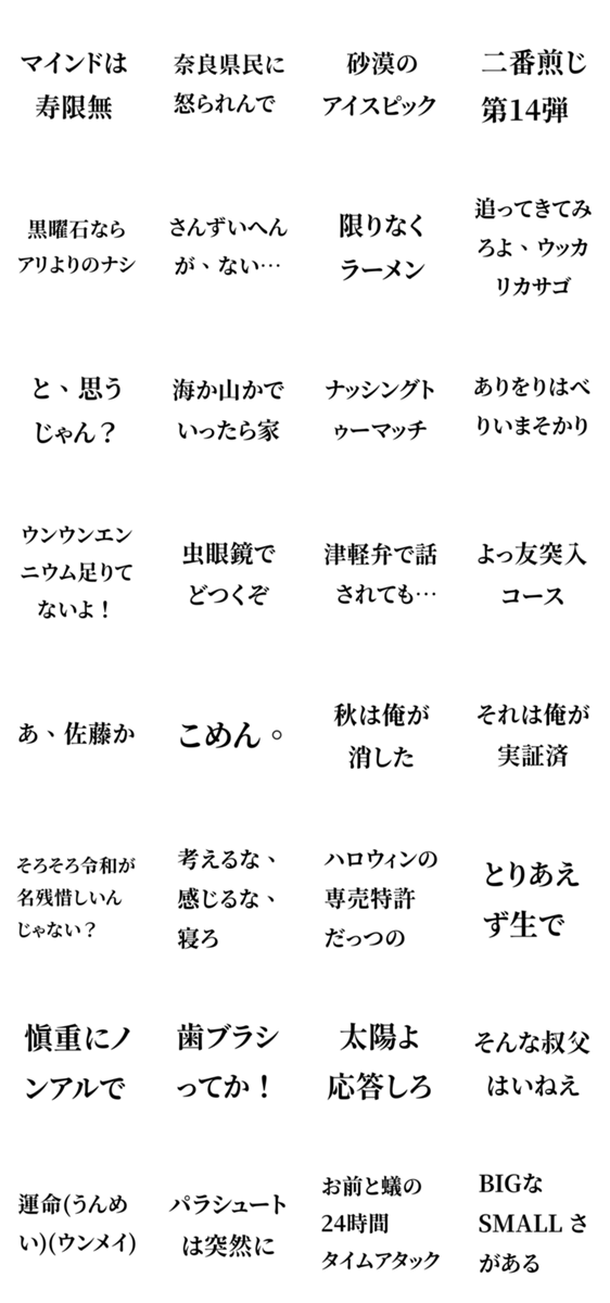 メント一覧