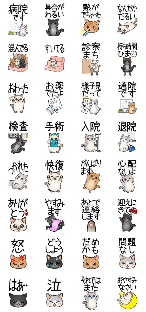通院中、入院中、療養中、体調不良の時に使える便利な連絡用でか文字スタンプです!(具合悪い/風邪/病院/入院/退院/病人/検査/手術/毎日使える/日常会話/挨拶 ※このスタンプはトークルームで大きく表示されるBIGスタンプです。