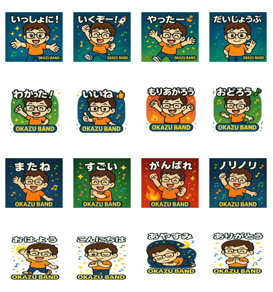 「おかずバンド」の元気なダンサーオレンジがスタンプに!明るく楽しいキャラが、ダンスで気持ちを盛り上げます。