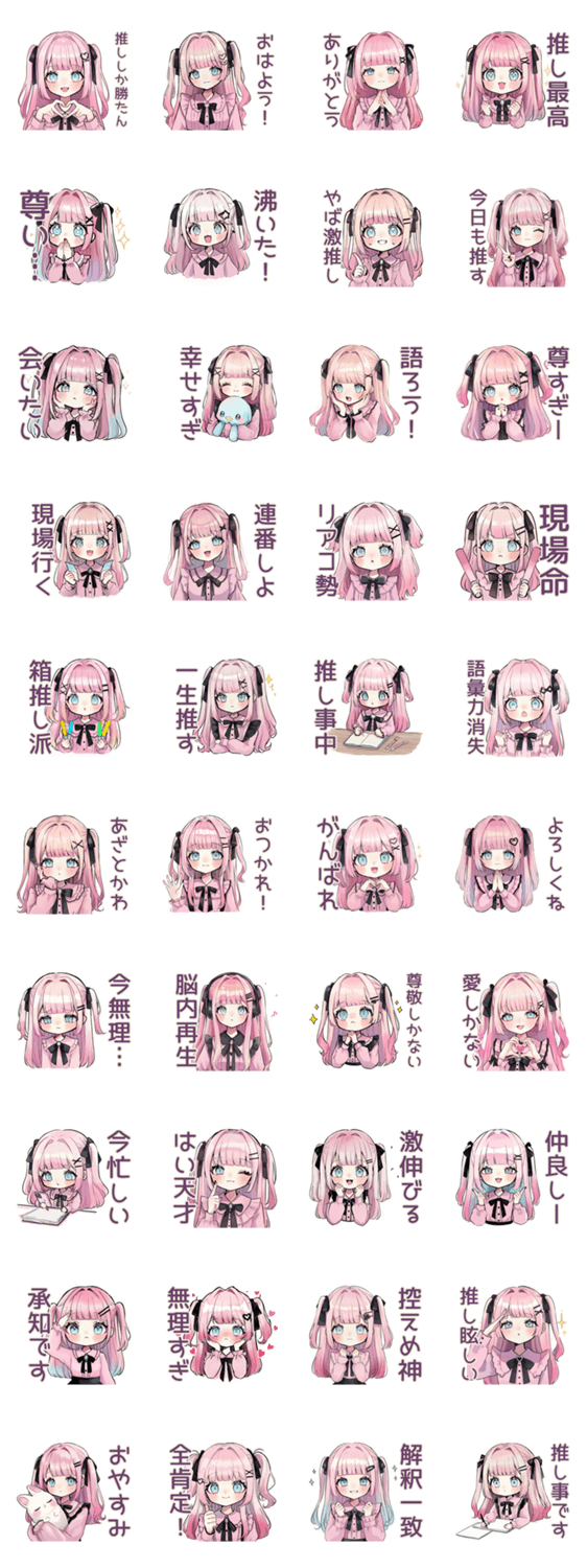 姫カット女子の推し活スタンプ!地雷系、量産型、メンヘラ、ぴえんでかわいく応援♡