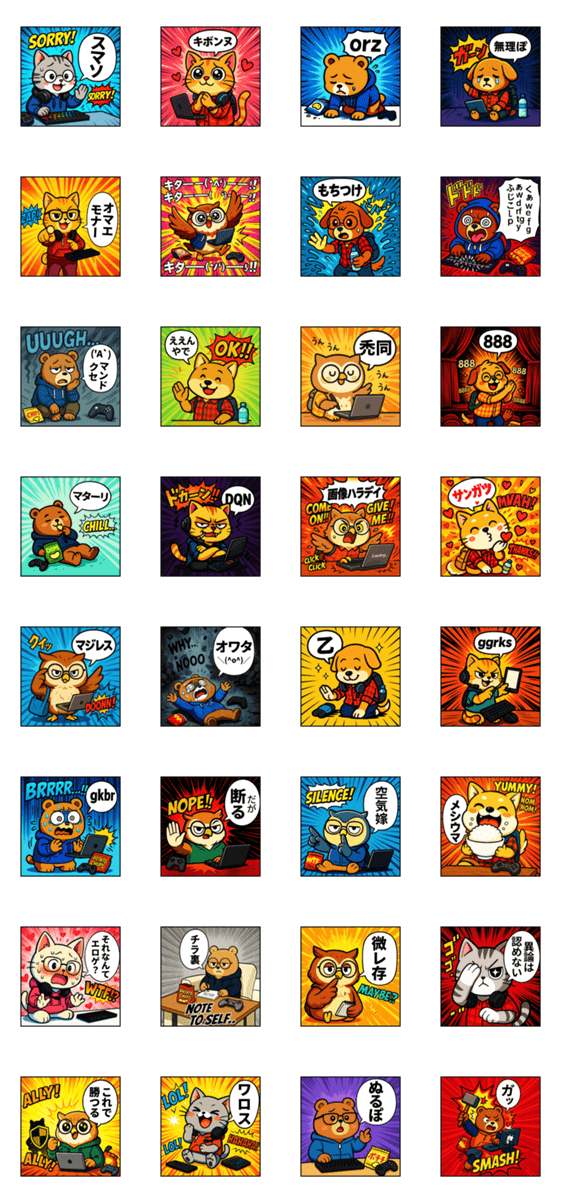 懐かしすぎるネットスラングがアメコミ風に大暴れ! 今北産業から禿同まで、アニマルたちがゆるかわに再現。 トークに笑いとノスタルジーをお届けします。