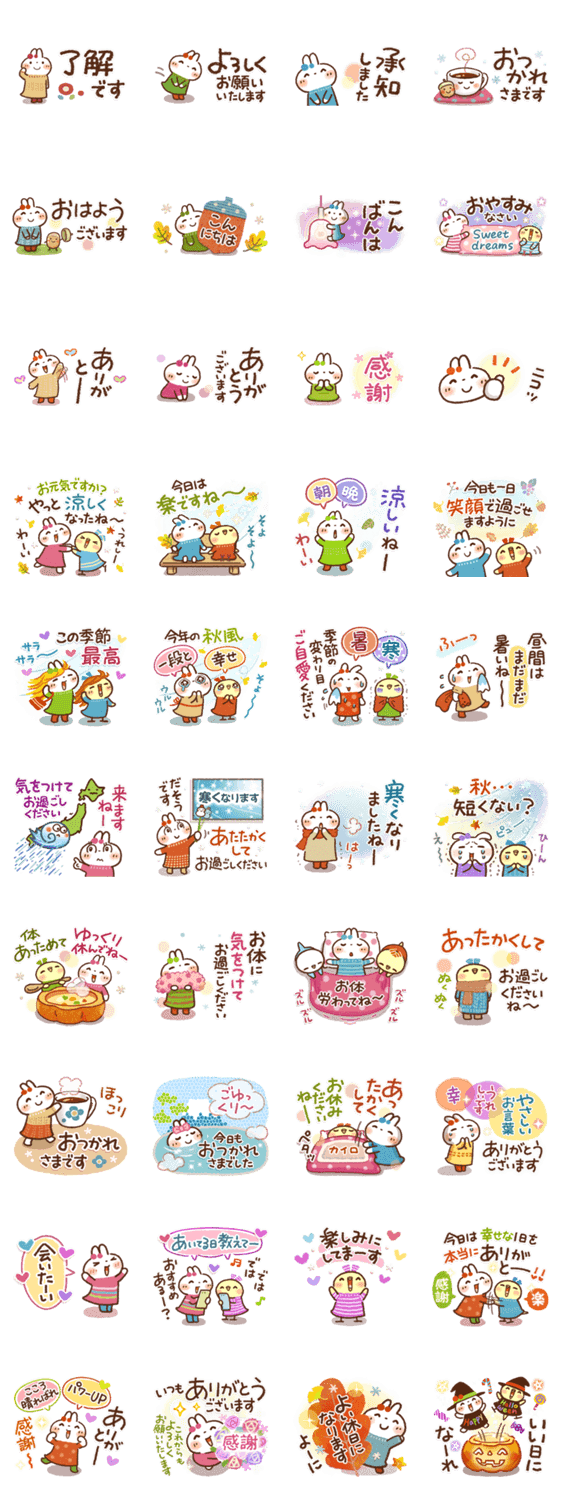 使いやすい省スペースの日常スタンプと気づかい多めの大人の秋冬スタンプがセットになりました♪(日常・敬語・寒い・秋・冬・寒い・敬老の日・ハロウィン入り)