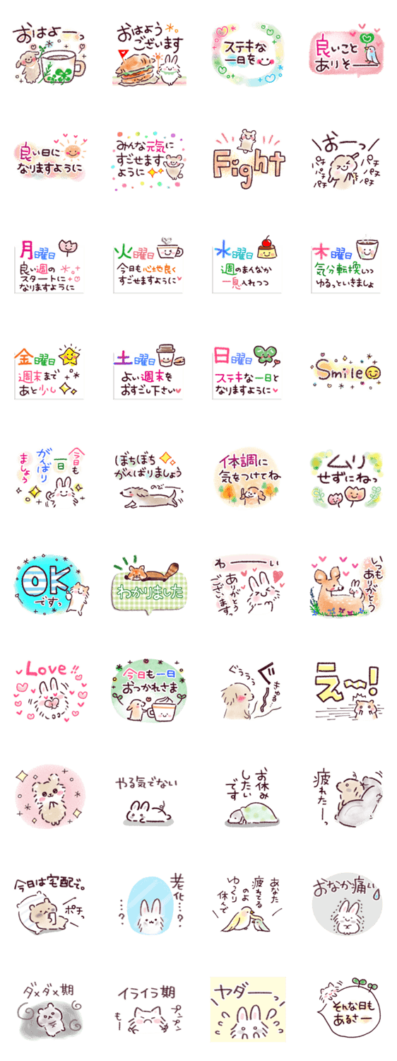 1週間毎日使える気持ちを上げるポジティブな言葉と、ちょっと元気ない時にも使えるスタンプも入ったセットです。