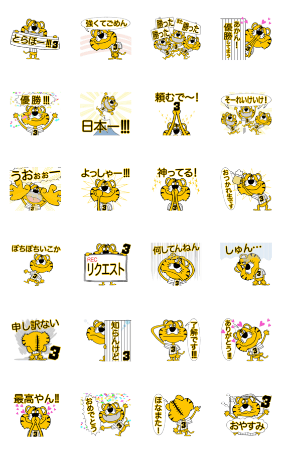 虎ファン/虎党/トラ好き/野球/背番号3/3/阪神地区/甲子園地区/関西弁の方の為のタイガー/スタンプ/TIGERsticker。とらほー!アレ!優勝!日本一まで応援しテル!☻edacchi