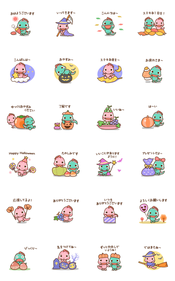 BABYディノ( Dino )が新登場♪よく使う言葉に秋のイメージとハロウィンシーンを盛り込んだアニメーションです♫