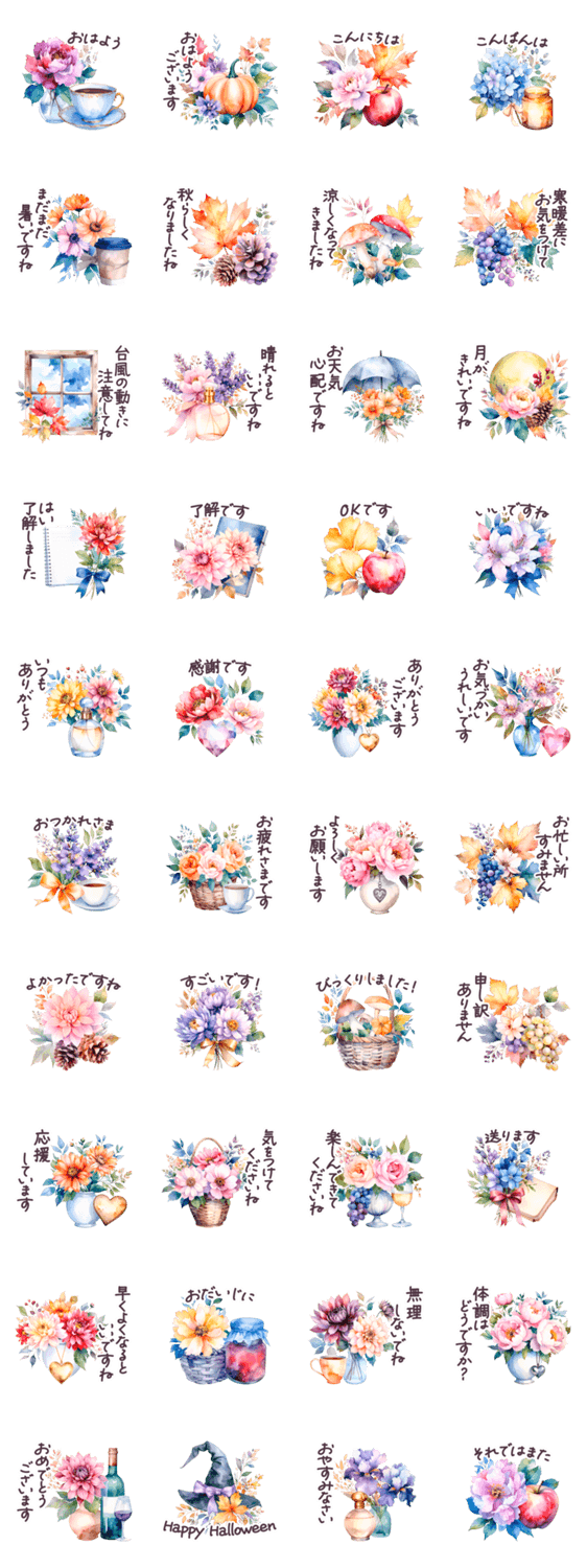 秋に毎日使える 水彩 敬語✿大人上品お花 -LINEスタンプマニア