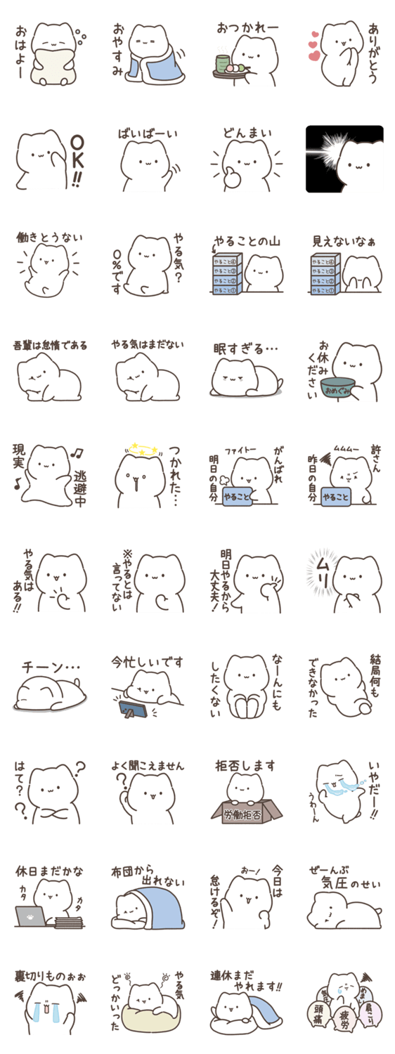 ちょっぴりドジでゆるいねこ、ゆきまるの怠惰な日常スタンプです
