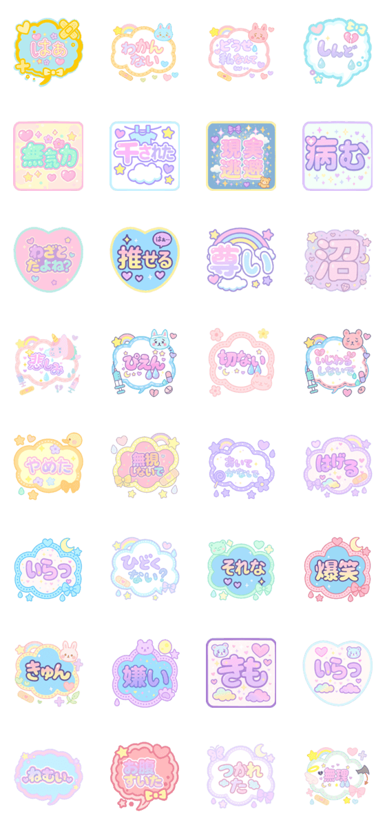 パステルカラーで描いた、ちょっぴり病みかわなネガティブスタンプ。 悲しみ・無気力などの本音を、ふんわりかわいく届けます。友達/家族/恋人/かまって/メンヘラ/メルヘン
