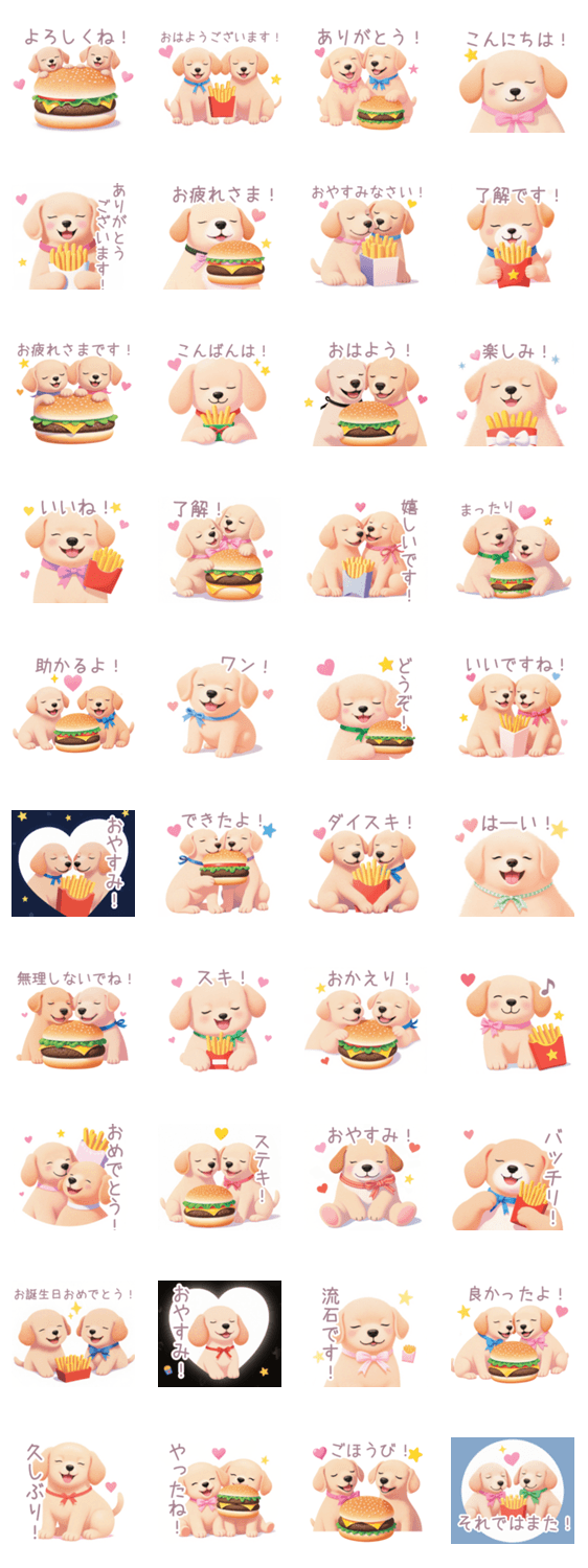 ハンバーガーと仲良し子犬スタンプ -LINEスタンプマニア