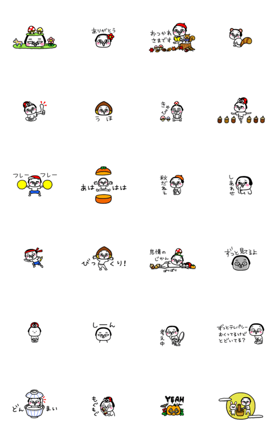 マイペースに生きる人々のためのシュールで自由なナンセンスなスタンプ。コミカルに動く秋満載の小さいスタンプです!