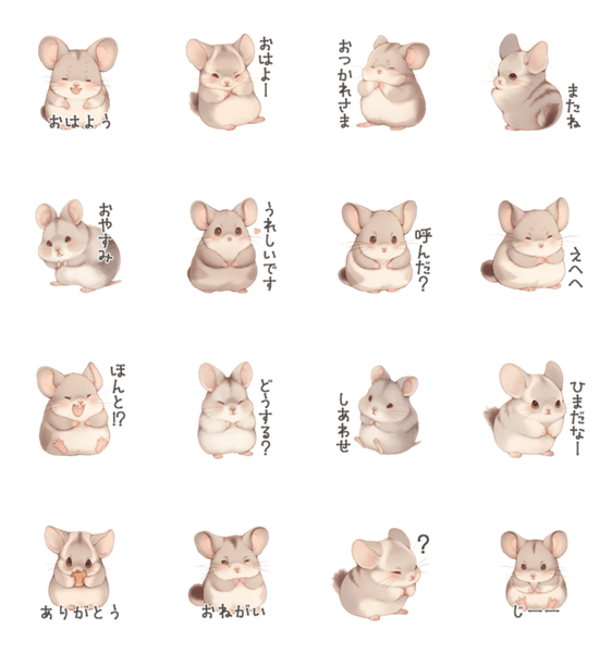 使いやすいベーシックなスタンプ。優しいタッチのチンチラが癒してくれます。