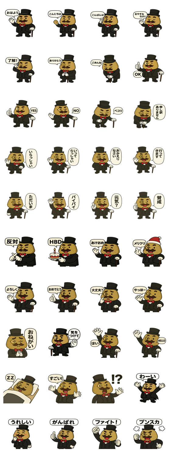 ユーモラスなじゃがいもキャラクター「いも男爵」スタンプ第1弾。 素朴でかわいい表情とセリフで、毎日の会話を楽しく盛り上げます。
