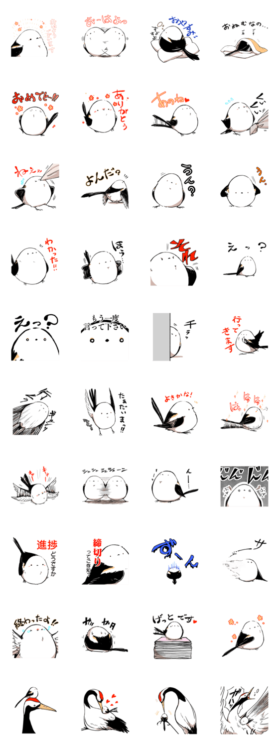 エガナさんがはしゃいぐスタンプです。北国の友達ツルくんもいっしょです。
