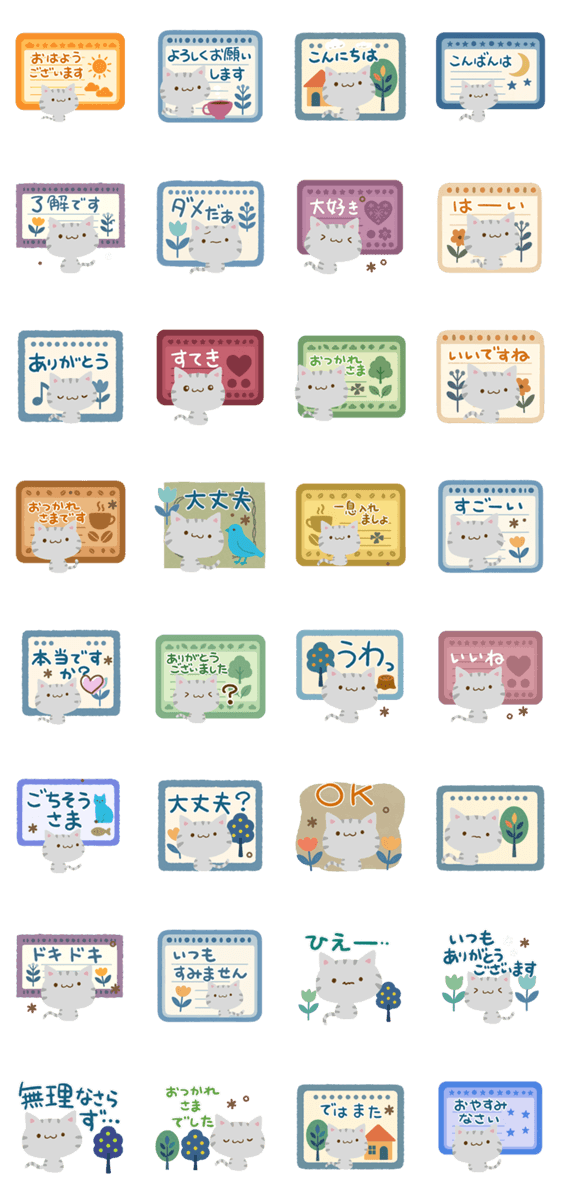 おしゃれな落ち着いたアメショ猫スタンプ。北欧風ナチュラルガーリーアメリカンショートヘアー。セピア色風なかわいい、ねこスタンプです。【かたこ】可愛い・便利・ネコ