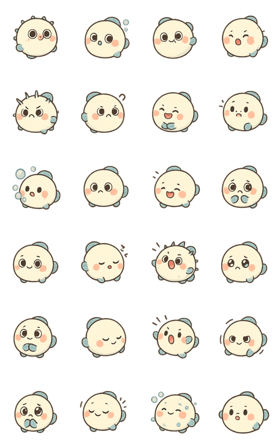 まるいぷぷふぐがかわいい表情としぐさでチャットをたのしくする