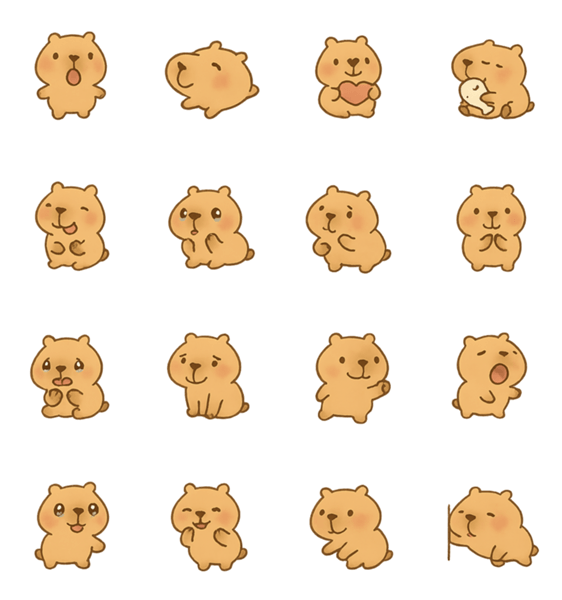 手描きのオリジナルキャラクター カピバラKapi かわいい表情としぐさでトークをほっこり彩る 透明背景