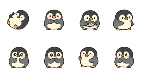 オリジナルキャラクター ペンギンPico ふわっと手描きのかわいい表情としぐさでトークをあたたかく彩る 透明背景