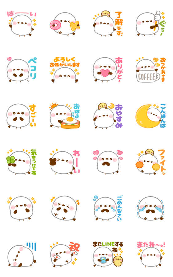 シンプル可愛く動くシマエナガの基本のスタンプです♡