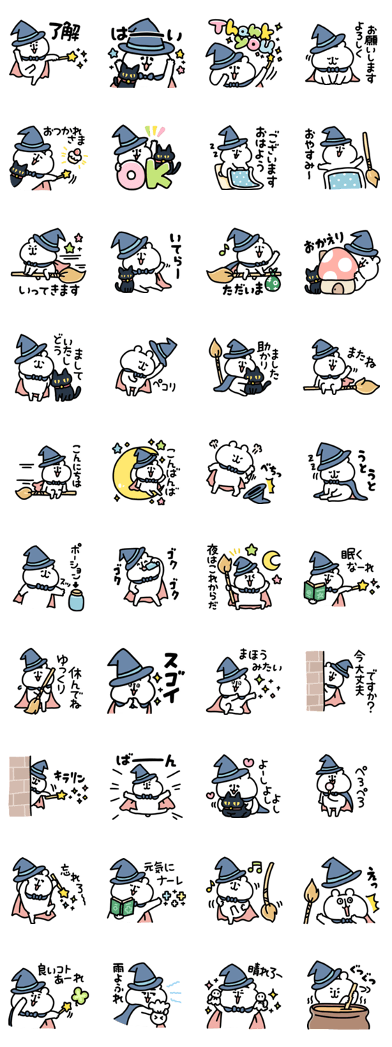 魔法使いのコスプレをしたゆるくまさんの楽しいスタンプ♪ハロウィンにもおすすめ♪